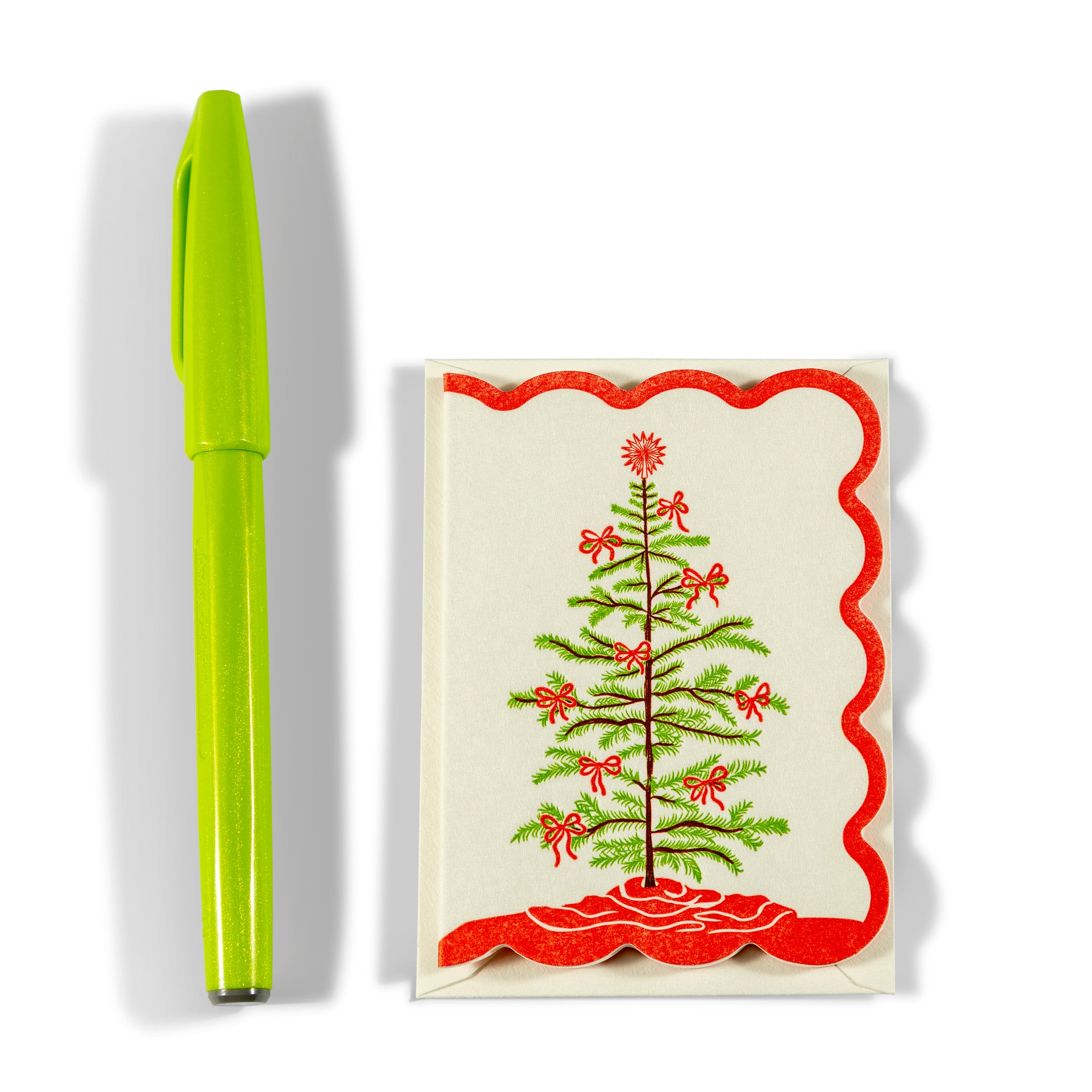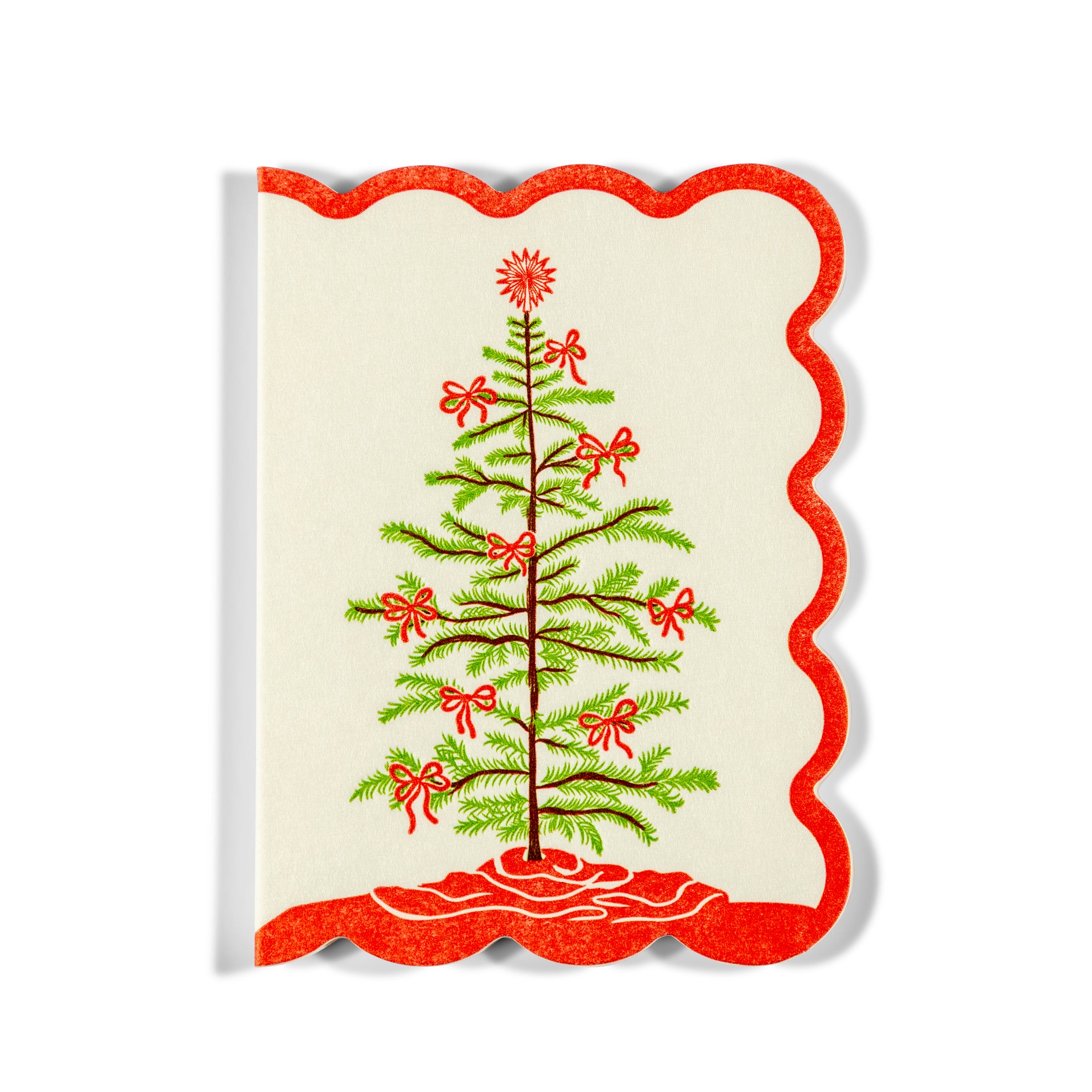 A little festive cheer goes a long way.Our mini enclosure cards are designed for those small but meaningful moments—whether you're adding a heartfelt note to a gift, slipping something sweet into a stocking, or leaving a festive surprise on a coworker's desk. Each card includes a petite envelope (2.625” x 3.625”) and is just the right size for holiday enclosures. This one features a delicate, bow-trimmed Christmas tree with a bold red scalloped border—classic and charming with a touch of vintage flair.