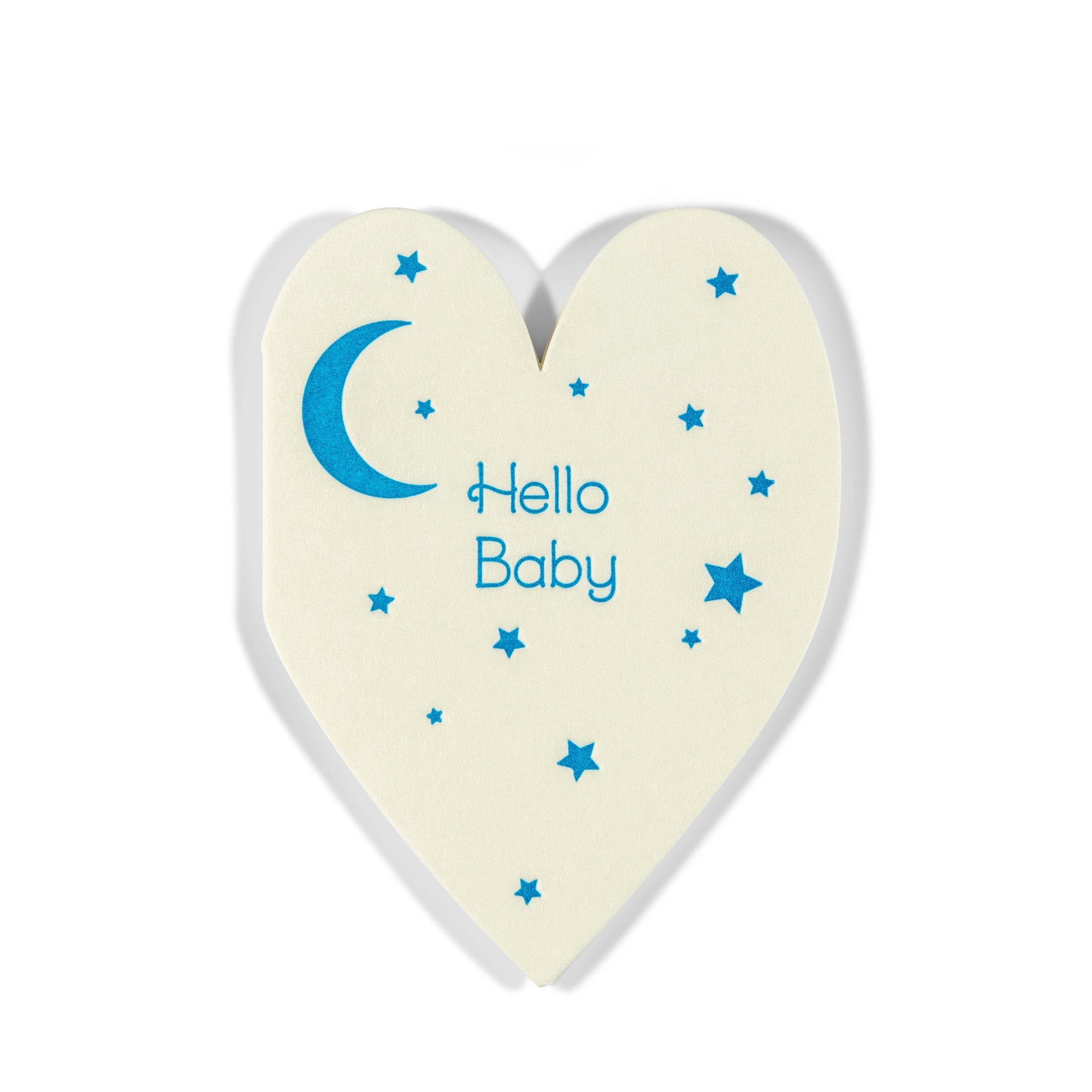 Sweet and small, just like the new arrival.Our mini enclosure cards are a charming way to send a tiny, heartfelt message. Whether tucked inside a baby shower gift, a bouquet, or a welcome-home bundle, they're the perfect add-on when you want to make a moment a little more special. Each card comes with a petite envelope (2.625” x 3.625”) and is too small to mail on its own. This heart-shaped design features a crescent moon and scattered stars with the message “Hello Baby” in bright blue—an adorable way to welcome a little one.